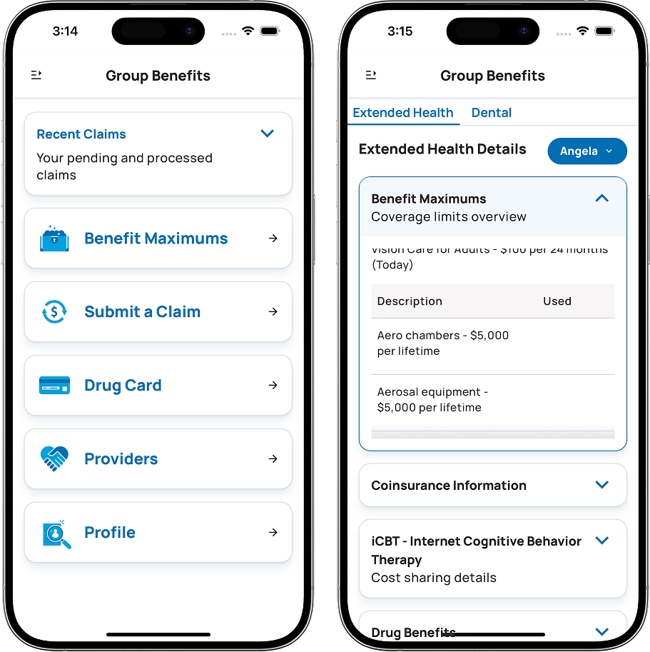 • Easily check your plan details, usage and maximums, so you know exactly what’s covered