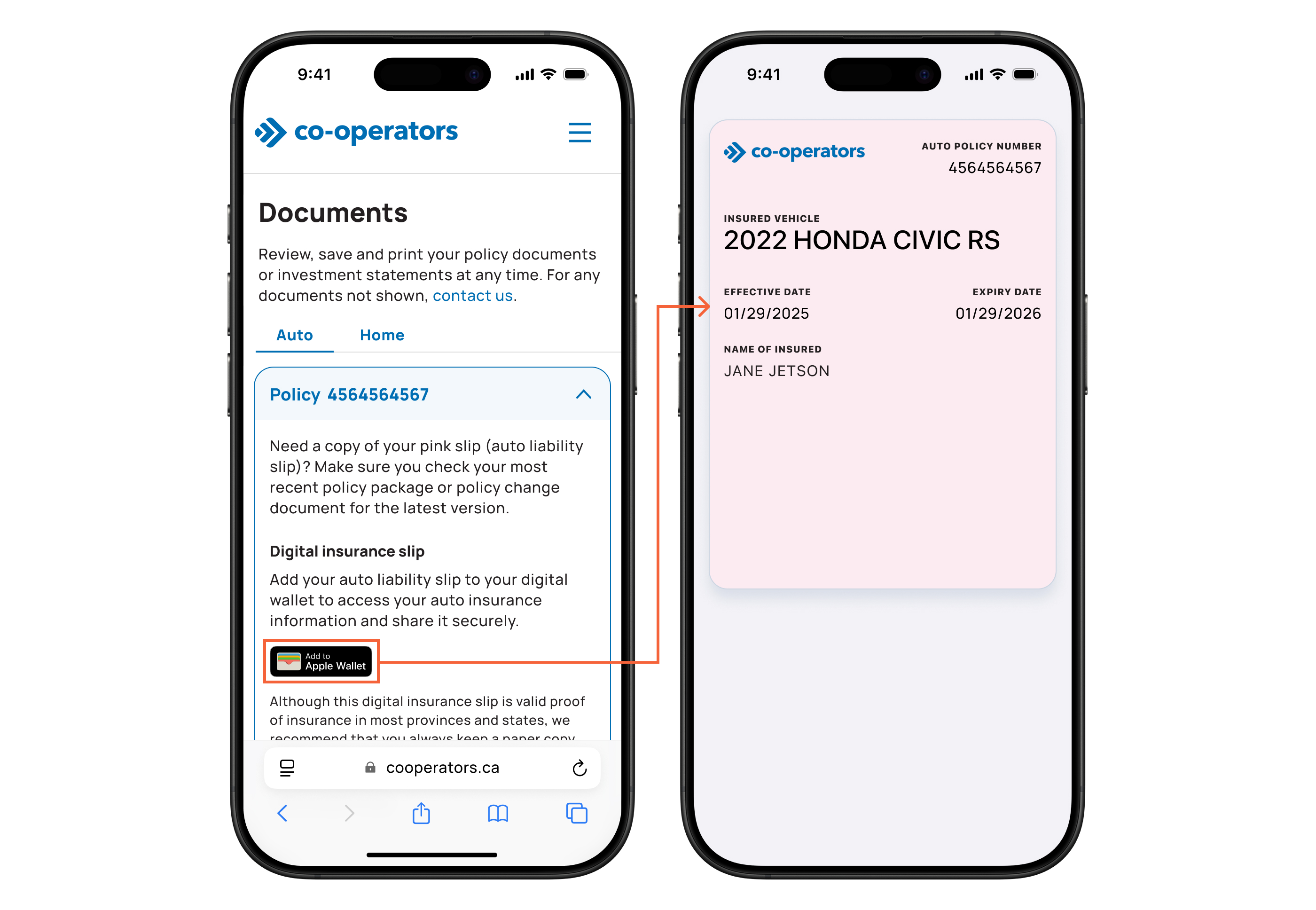 3. Under “Digital insurance slip”, select “Add to Apple Wallet” or “Add to Google Wallet".